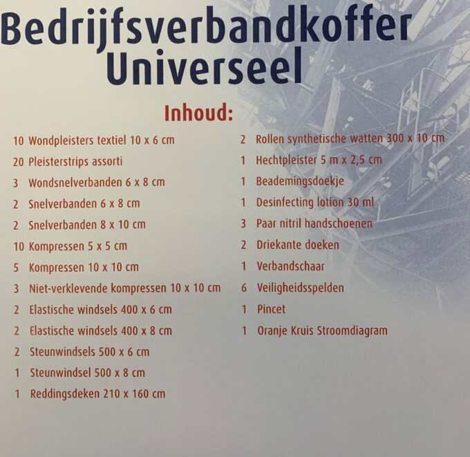 Indien u de verzekering van uw woning of inboedel bij Univé heeft, dan komen wij deze EHBO koffer bij u ophangen bij bestelling van meerdere artikelen. Voor inhoud koffer, zie afbeelding.